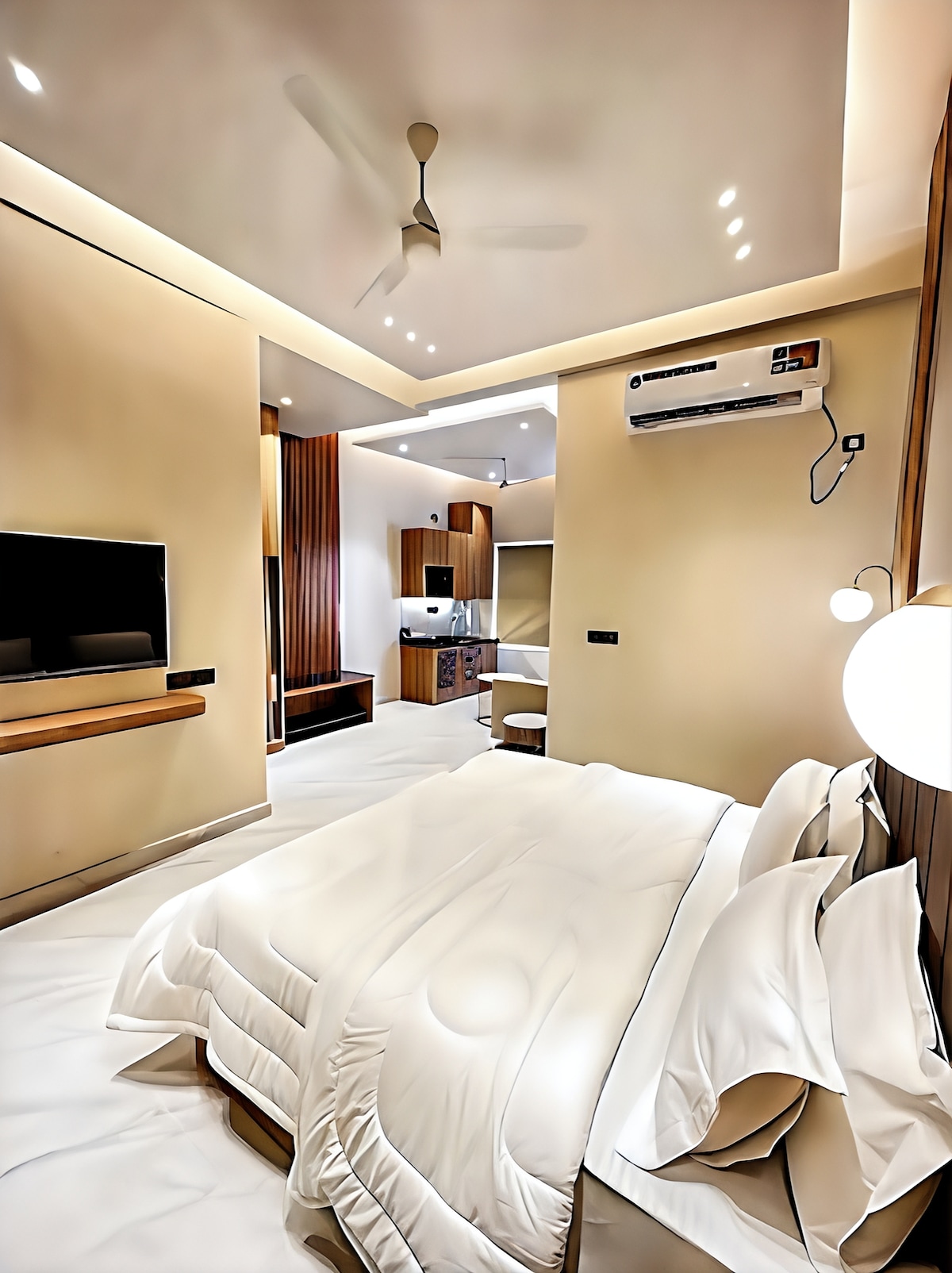Welcome to your stylish and comfortable home away from home. This modern 1BHK apartment features a beautifully designed living area with a smart TV, AC room, Kitchen with full Accessories , cozy sofa seating, Cafe style seating Area , and warm ambient décor for a relaxing stay. • Located about 300 meter from Nim Beach, Nearby Laxman jhula , Bajrang Setu Tapovan . • Perfect for couples, solo travelers, or work-from-anywhere guests.