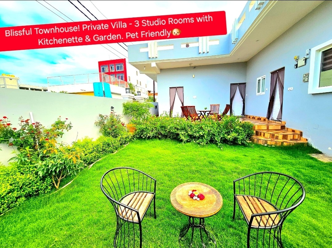 Welcome to Blissful Townhouse -A Private Garden Villa🌿 Enjoy Private villa with 2 luxury studio rooms, garden & patio, perfect for open air dine-in experience 🍽️,Yoga 🧘♂️ or simply relaxing with nature have Amenities - -Private Garden & Patio Space - AC - Smart LED TV - Workstations in each room🛏️💻. - Wi-fi - Kitchen in each room - Refrigerator - Microwave - Power Back-up A friendly caretaker is available on-site for any help. Pet parents welcome! 🐾 We love hosting furry guests.