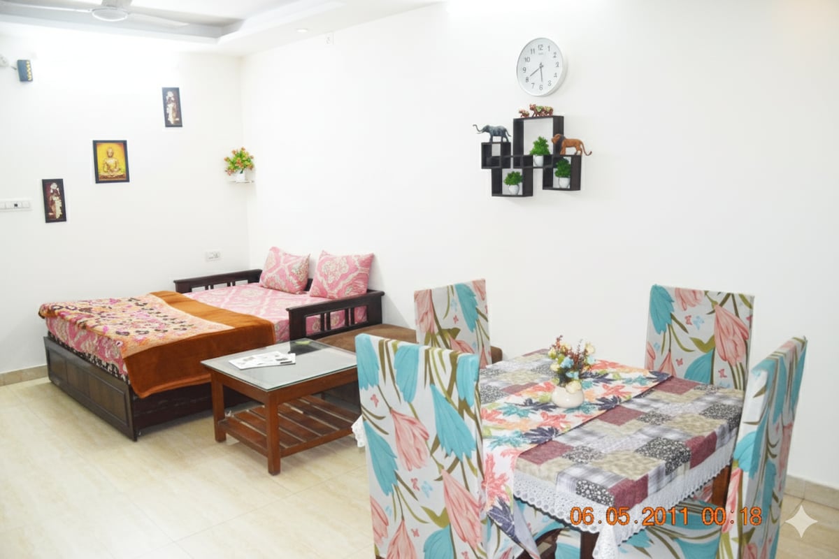 Book your stay now for a harmonious blend of comfort & serenity. A tranquil homestay just 200m away from the sacred Ganges River. The spacious hall invites you to unwind, practice yoga, or simply enjoy moments of peace with mountain views along with Ginger Tea and high-speed Internet with Netflix, Prime, Hotstar, etc on the house! and ready for Work+Vacation. Located near the City Center, AIIMS, home is a peaceful sanctuary for your stay in this spiritual city. This is your place to BOOK NOW!