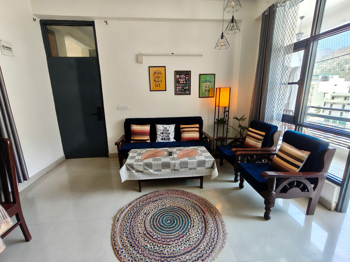 Holi Special Stay Tapovan Rishikesh Peaceful & spacious stay near Ganga & adventure spots- perfect for workations, families, & nature lovers. Near yoga & meditation schools, cafes & Rafting in Ganga…. Free Parking, private balcony, spacious lounge, large kitchen, modern bathroom & cozy bedroom- fully furnished & Pets Friendly. Ideal for yoga students, digital nomads, couples & travelers, this flat blends modern comfort with soulful Rishikesh vibes for an unforgettable stay