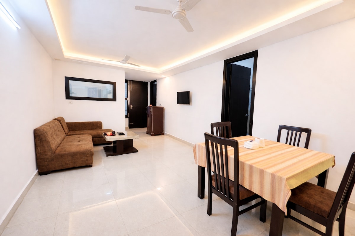 Welcome home with a 7 Star Interior 1-bhk Apt inside Deecon valley complex in Tapovan. This immensely luxurious apartment is done tastefully and guests from all over the world have loved it and blessed with great reviews. This "GUEST FAVOURITE" apartments is nothing less than heaven and equipped with all comforts like free parking, full kitchen, Caretaker support, & sleeping furniture for 5-7 people. Please shower your holiday with luxury.