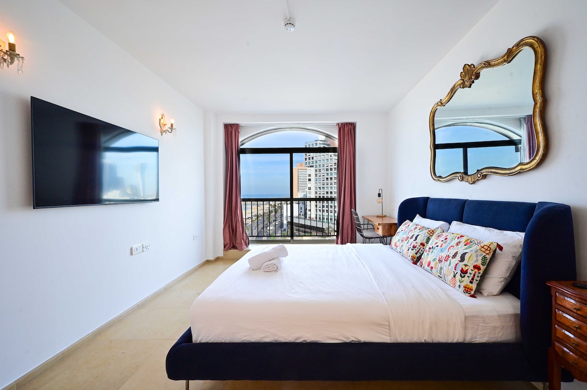 Enjoy spectacular cityscapes from the private sun balcony of this ninth floor great new tower right in the heart of Tel Aviv's best neighborhood front the Beach next the Royal Beach Hotel. This stunning 1 bedroom and 1 bathroom offer guests ideal location and sumptuous decor. There is a fantastic view. A fully equipped Kitchen with your own coffe machine. There is a Lobby with a security 24/7 Smart TV and strong WIFI. AC works perfectly. Washing machine & dryer.
