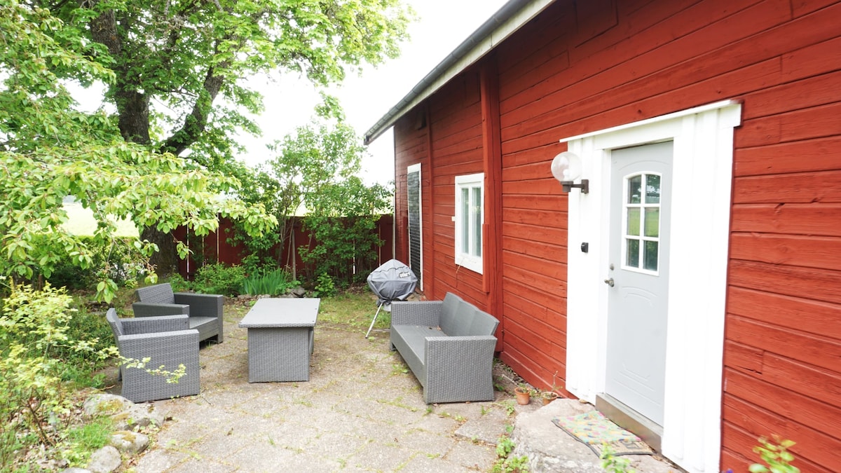 Det är en stuga på landet med lugnt läge ca 10 min från E4:an söder om Mantorp. Huset är på ca 50m2. Ett sovrum med dubbelsäng, vardagsrum med bäddsoffa och öppen spis. Vardagsrummet är öppet upp till nock. Över sovrummet finns ett loft med två madrasser som kan användas som extrabäddar. Köket är fullt utrustat samt med diskmaskin. På tomten finns också en friggebod med en våningssäng. Stor lummig trädgård med uteplats och grill. Priset gäller för 4 bäddar. Extra sovplats 150sek/bädd.