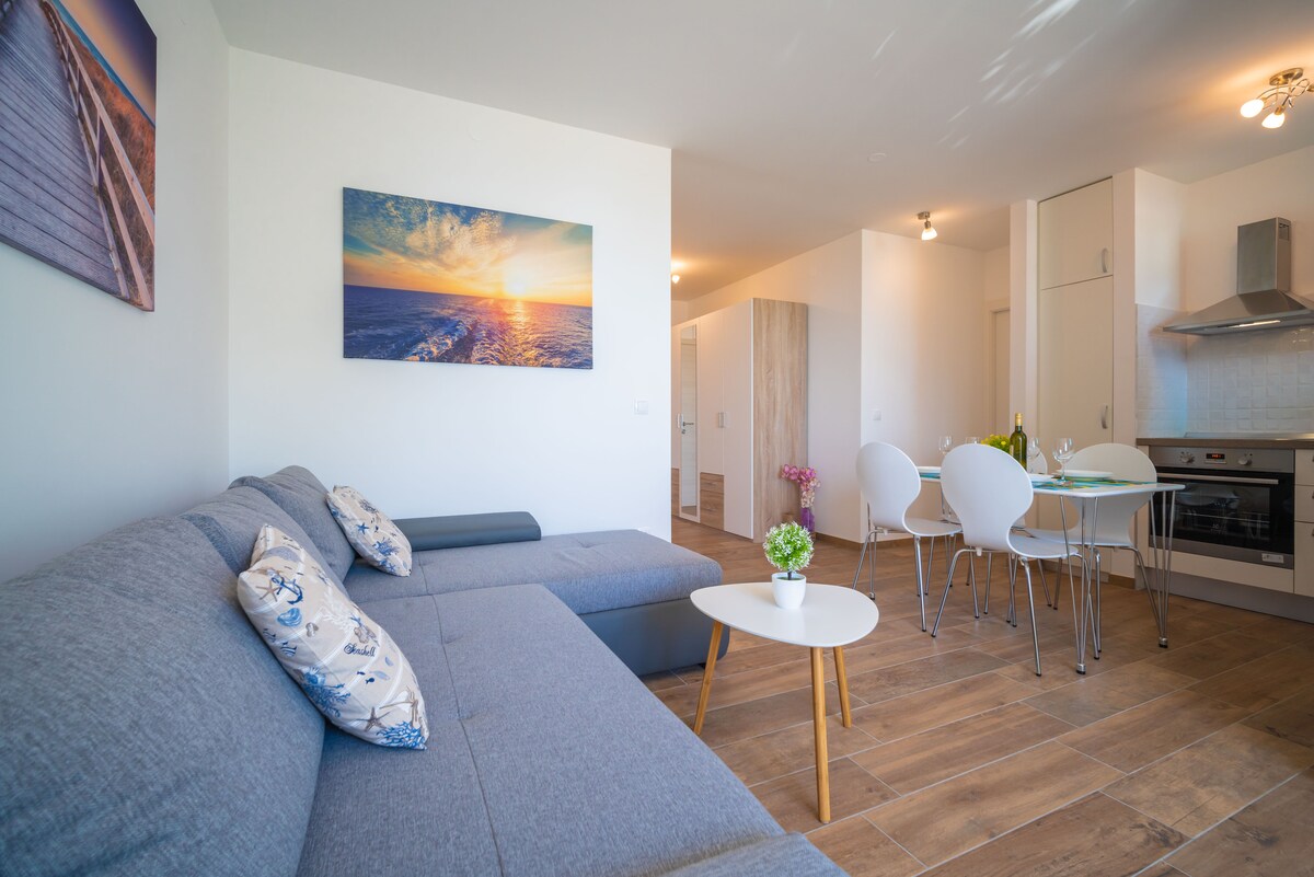 This modern apartment includes a full (eat-in) kitchen, a combined bedroom and living area with a comfortable pull-out couch, and a recently updated bathroom. Apartment is located on the first floor and situated in the historical city center. It's ideal for couples especially if they are arriving by bus because it is one minute walk from the central bus station. Apartment is very well equipped. Dishwasher and washer-dryer are located in the kitchen and TV in the air conditioned living room.