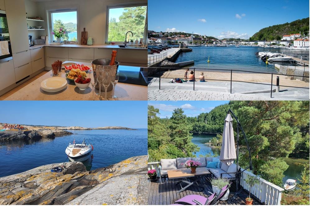 This charming home from 1880 is beautifully situated on the outermost row of Tangen, known for its historic white-painted wooden houses and narrow passageways. Enjoy three lovely outdoor areas and a fully stocked kitchen. The property lies just a few meters from the sea, with public swimming area Gustavs Point just below and a lovely southern view towards the historic Stangholmen Lighthouse. Welcome to "The Pearl by the Point"!