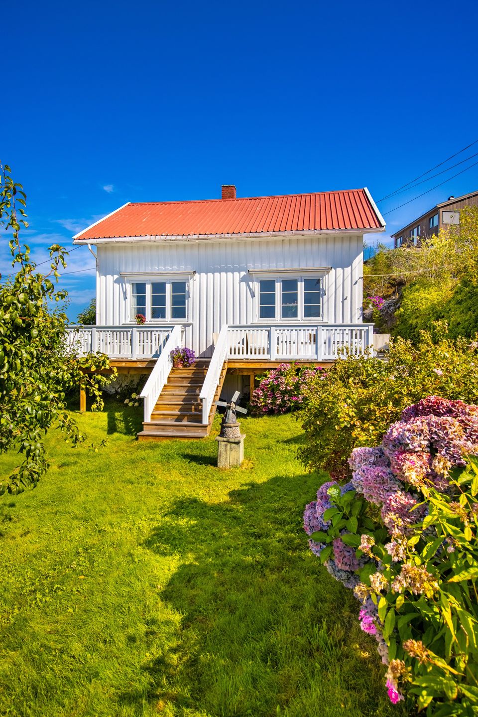 Her bor du ca 1 km fra bysentrum, ca 250 m fra matbutikken, ca 1 km fra Randvik stranda med svaberg, fiskemuligheter og badestrand. Boligen har 2 soverom med dobbeltsenger og 1 barnerom med sprinkelseng og mulighet for å sette opp en ekstra reiseseng. Huset passer derfor til maksimalt 4 voksne og 2 små barn. Du får morgensolen på verandaen på fremsiden av huset og ettermiddags/kveldssol på verandaen på baksiden av huset. Gassgrill på verandaen. Godt med parkeringsplass og el-billader i garasjen.