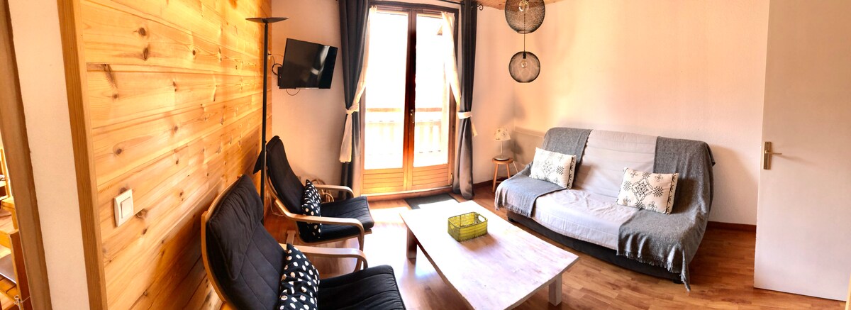 Appartement chaleureux T2 de 30 m2 5 couchages dans résidence récente 4 étoiles Les Balcons de Sirius avec accès direct sur les pistes et piscine couverte. L'appartement est composé d'un salon, une cuisine équipée, 1 chambre avec lit double 140, un coin montagne séparé avec lit superposés et canapé 1 couchage. Parking gratuit à proximité. Exposé sud ouest, 2 balcons RDC/1er étage vue montagne. Mon logement est proche des restaurants. Appartement non fumeur intérieur sans animaux.