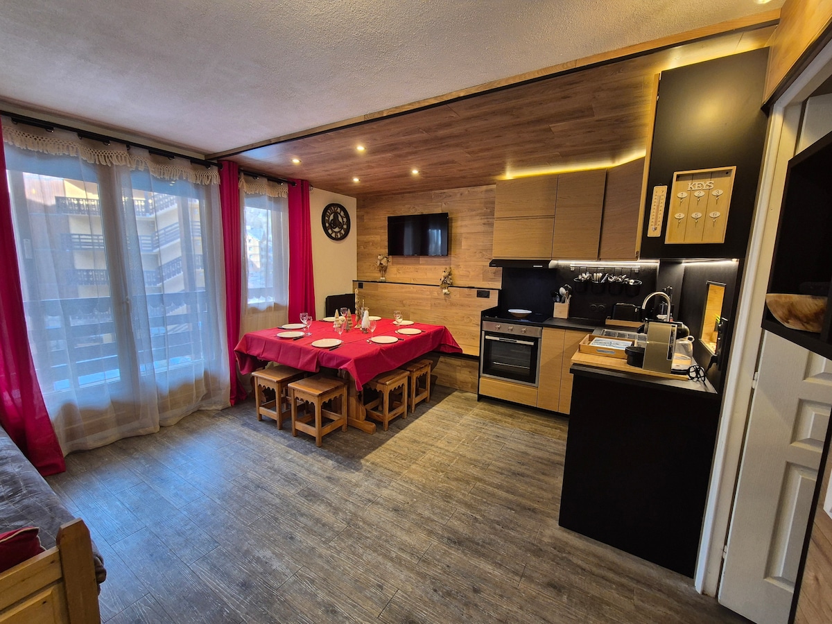 Résidence Antarès,T2 meublé dans résidence sécurisée par digicode. Calme et très cosy aux pieds des pistes,piscine chauffée Entièrement équipé et tout confort,2 TV,grand frigo/congélateur,literie chambre en 160,lit mezzanine en 150 dans coin nuit ouvert + lit en 90 en dessous Cafetière électrique,tassimo,appareil à raclette,fondue,plancha,grille pain,four, micro-onde,lave-vaisselle,lave linge,aspirateur,plaque vitro céramique,balcon équipé table et transat Position N/E très ensoleillé classé 5 *