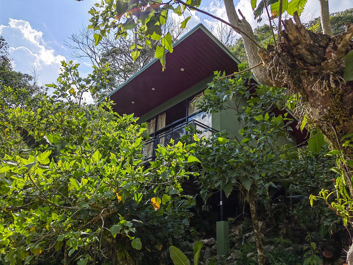Es una casa estilo cabaña, está justo en medio de una reserva forestal de 4.000 metros cuadrados donde se pueden observar variedad de especies de plantas, aves, ardillas, mariposas y otros animales. En resumen un lugar tranquilo y acogedor en contacto con la naturaleza.