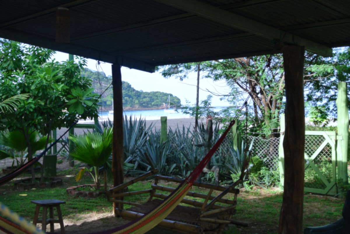 Serene Beach Sunrises & Magical Tranquil Sunsets on Ometepe! Private Bungalow w/WiFi, clean bedroom & bathroom w/warm water showers! Patio w/hammock, table, seating - gardens - beach front property = longest stretch of sandy beach between 2 volcanoes on paved Main Road. Beautiful carved wood/glass door & windows - all screened w/metal bar protection plus ceiling fan. Natural wood ceiling & furniture with 1 dbl & 1 single bed. Ceramic tiled. Parking/Daily Housekeeping! Meals/laundry extra. Tours