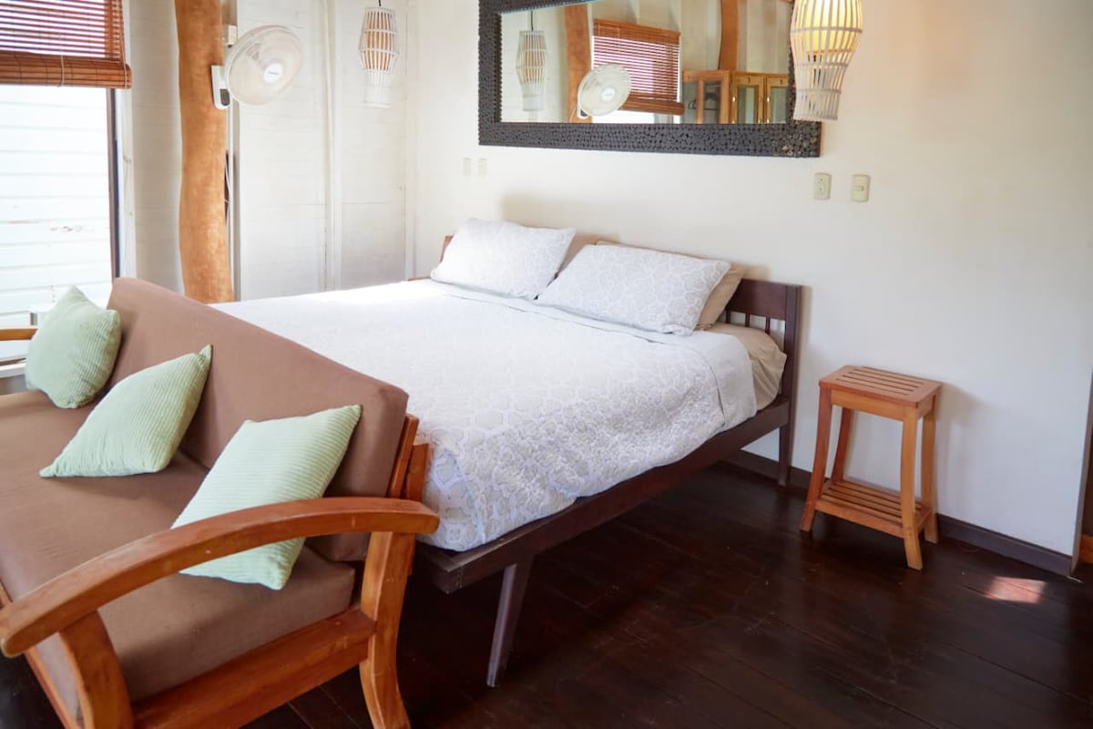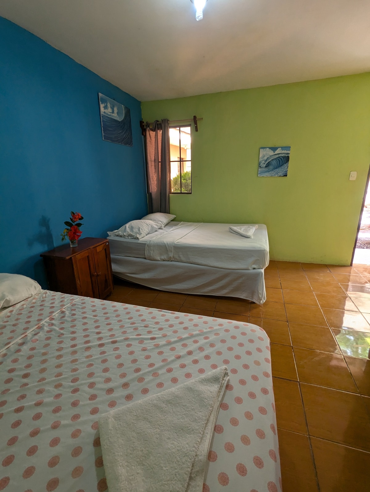 This is a private 2 double bed room with private bathroom and AC. AC is included in the price which is not always the case in Gigante. You also have access to a fully stocked kitchen and outdoor garden. The price is low because we are new and building our online presence. We are a small surf hotel located in the center of Gigante steps away from playa Gigante. Perfect place for students at the Spanish school or surfers here to check out the waves. We offer board and moto rentals on site.