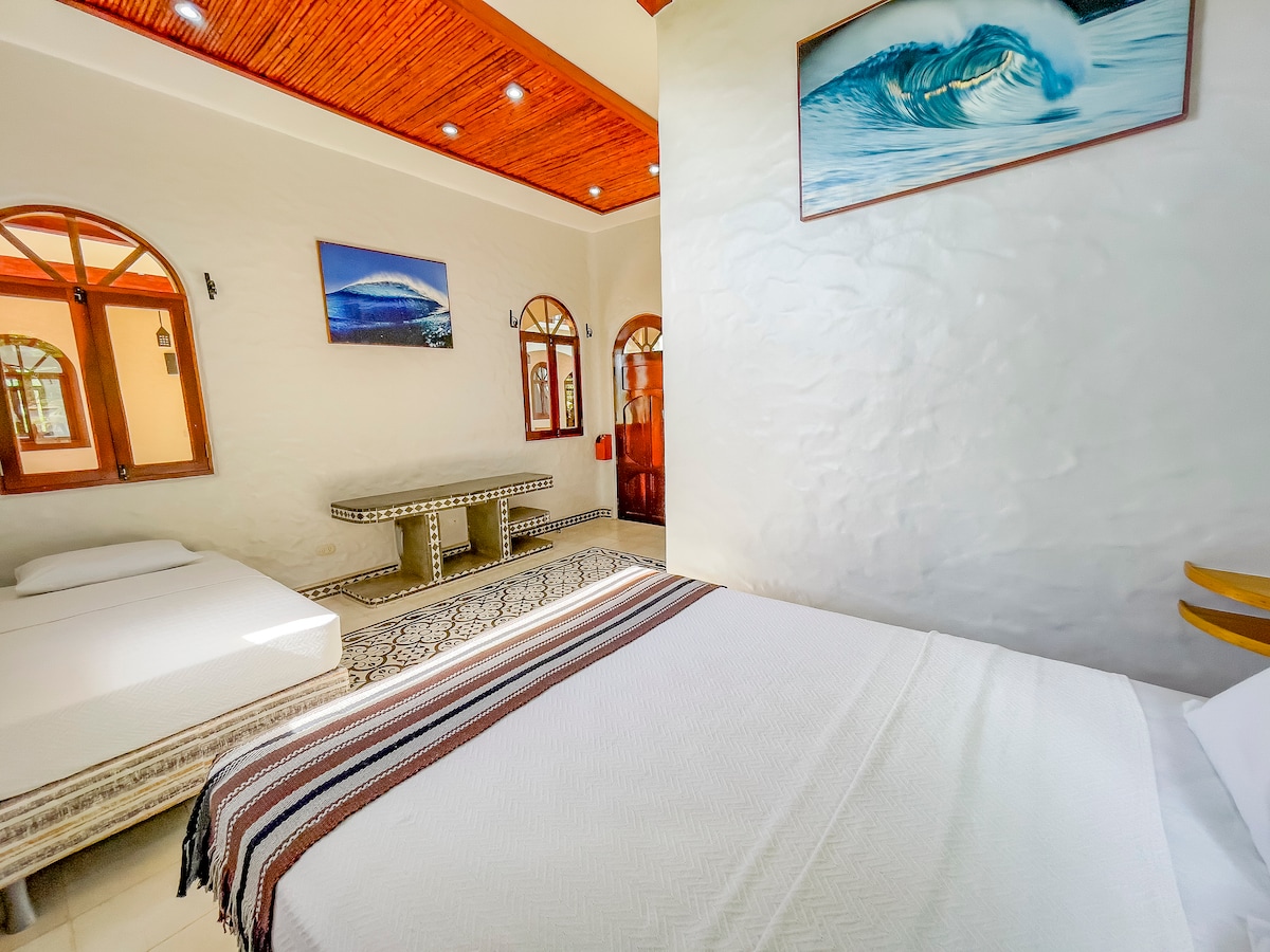 Welcome to Hotel Costa Oeste! A beachfront boutique hotel on Playa Jiquelite. The hotel features 6 guest rooms, pool, beach access, and full service bar and restaurant on site. Please note this room is only equipped with ceiling and floor fans. For an additional charge we can add a portable a/c unit, based on availability.