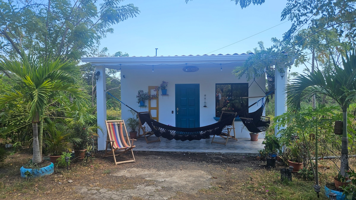 Escape to a peaceful boho-style private cabin surrounded by lush gardens on Ometepe Island. Thoughtfully designed for comfort and simplicity, with A/C, high-speed Wi-Fi, and a private hammock porch. A recently added kitchenette includes a sink, mini fridge, microwave, and two-burner cooktop for light meals. Quiet and relaxing, designed to help you slow down and enjoy the rhythm of island life. Free transport from Moyogalpa included, with easy arrival and local support throughout your stay.