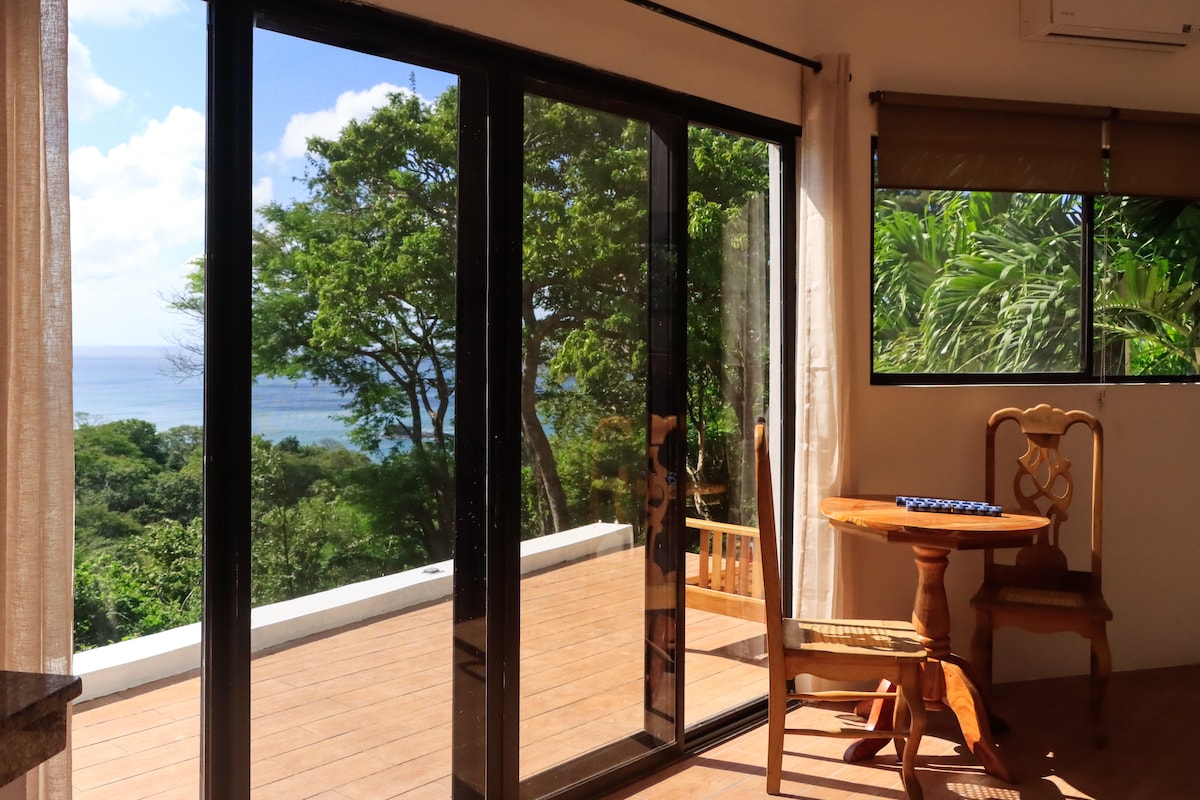 Newly-renovated and refurnished, this premium 1-bedroom studio has a well-equipped kitchenette and private balcony. It has air-conditioning, an en-suite bathroom and private terrace. Although in a secluded private location, it is walking distance to two surf beaches each with multiple rustic beach cafes, 20min drive or a regular shuttle bus to San Juan del Sur, 100m stroll to modern all day cafe/bar with free use infinity pool.