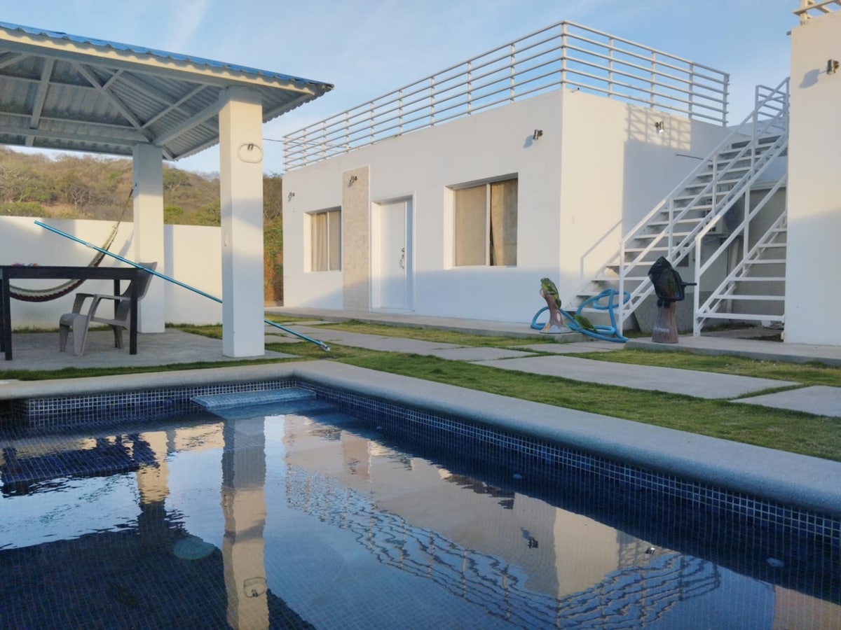 está villa sencilla pero completa tiene alberca compartida con otra unidad está situada en residencial tranquilo y seguro. este alojamiento con seguridad 24/7 es perfecto y ideal para las familias que buscan tranquilidad y al mismo tiempo aprovechar la comodidad de la cercanía al pueblo y a las mejores playas de la zona internet 🛜 alta velocidad fibra óptica 2 aire acondicionado central y en un cuarto pantalla 43"" Netflix y cable tv internet alta velocidad