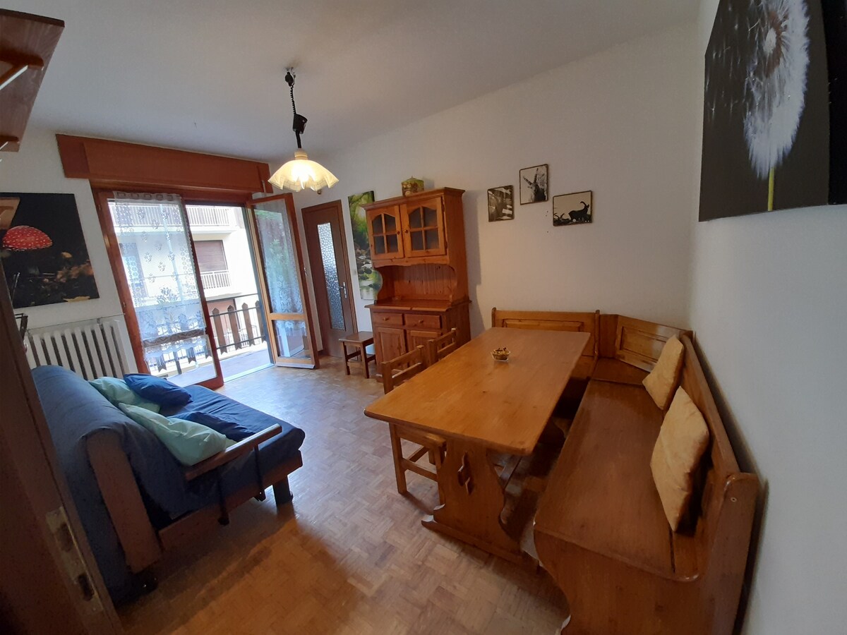 L'alloggio è in pieno centro in un bel complesso con giardino condominiale, portineria,a 50 metri dalla fermata del bus gratuito che porta alle piste e alla stazione ferroviaria. E' uno spazioso bilocale con camera da letto ,ampio soggiorno con divano letto doppio e poltrona letto, cucina separata da ante scorrevoli, bagno con vasca doccia.Ha una splendida vista sulle montagne e un ampio terrazzo soleggiato. Ha un comodo posto auto in garage e una cantina che funge da ski box.