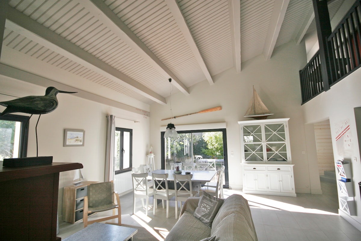 Cette villa de style a été réalisée par l'agence d'architecture d'intérieur (husdesign_archideco) que dirige Yann... Morceaux choisis pour le mobilier design (Kartell, Ligne roset, Roche Bobois, Boconcept...) Equipements tels que TV Led, Netflix, enceinte Bose, cuisine équipée, 3 chambres dont 1 en suite, 2 salles de bains, piscine chauffée, cuisine ext. avec plancha, ouvert sur un jardin paysagé plein Sud, sans vis à vis. Caution Airbnb pour ce logement : 2000 euros