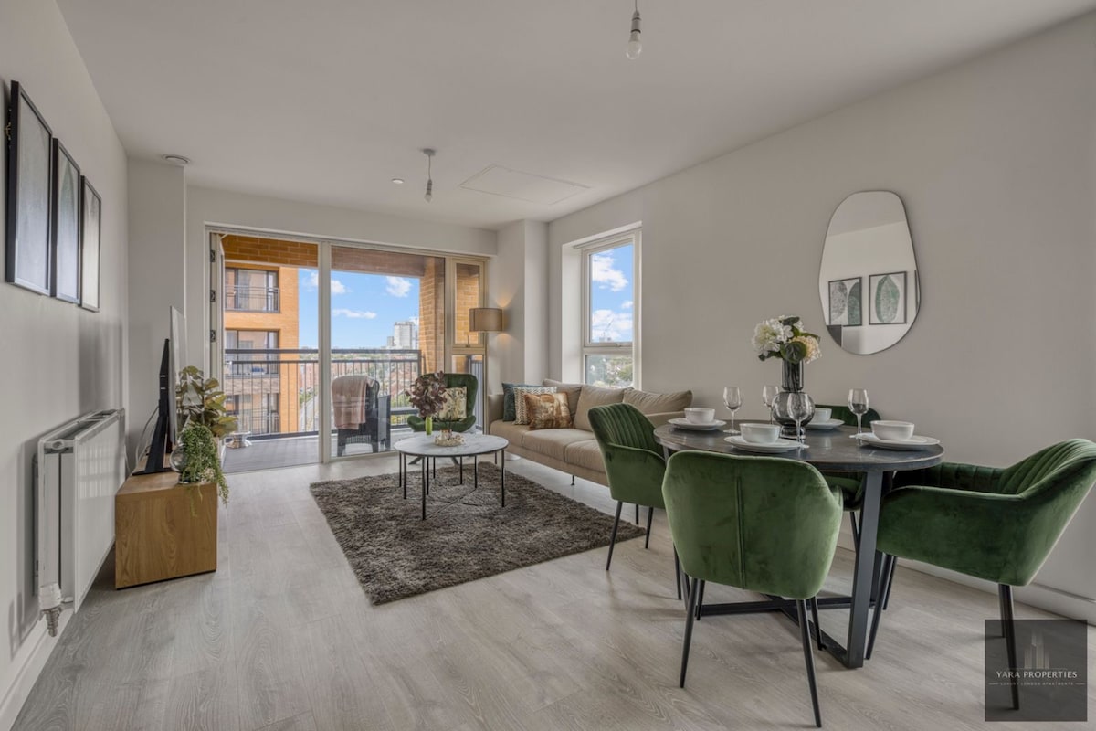 Welcome to our stunning 2-bedroom, 2-bathroom flat on the 6th floor, offering breathtaking skyline views of London. A Secure development, with an open-plan kitchen and living space, perfect for relaxing while enjoying panoramic sights of London Wake up to incredible sunrises and unwind with spectacular sunsets from the comfort of your home. It provide a tranquil retreat while keeping you well-connected a short walk to bus stops and underground, with Westfield only a 5-minute bus ride away.