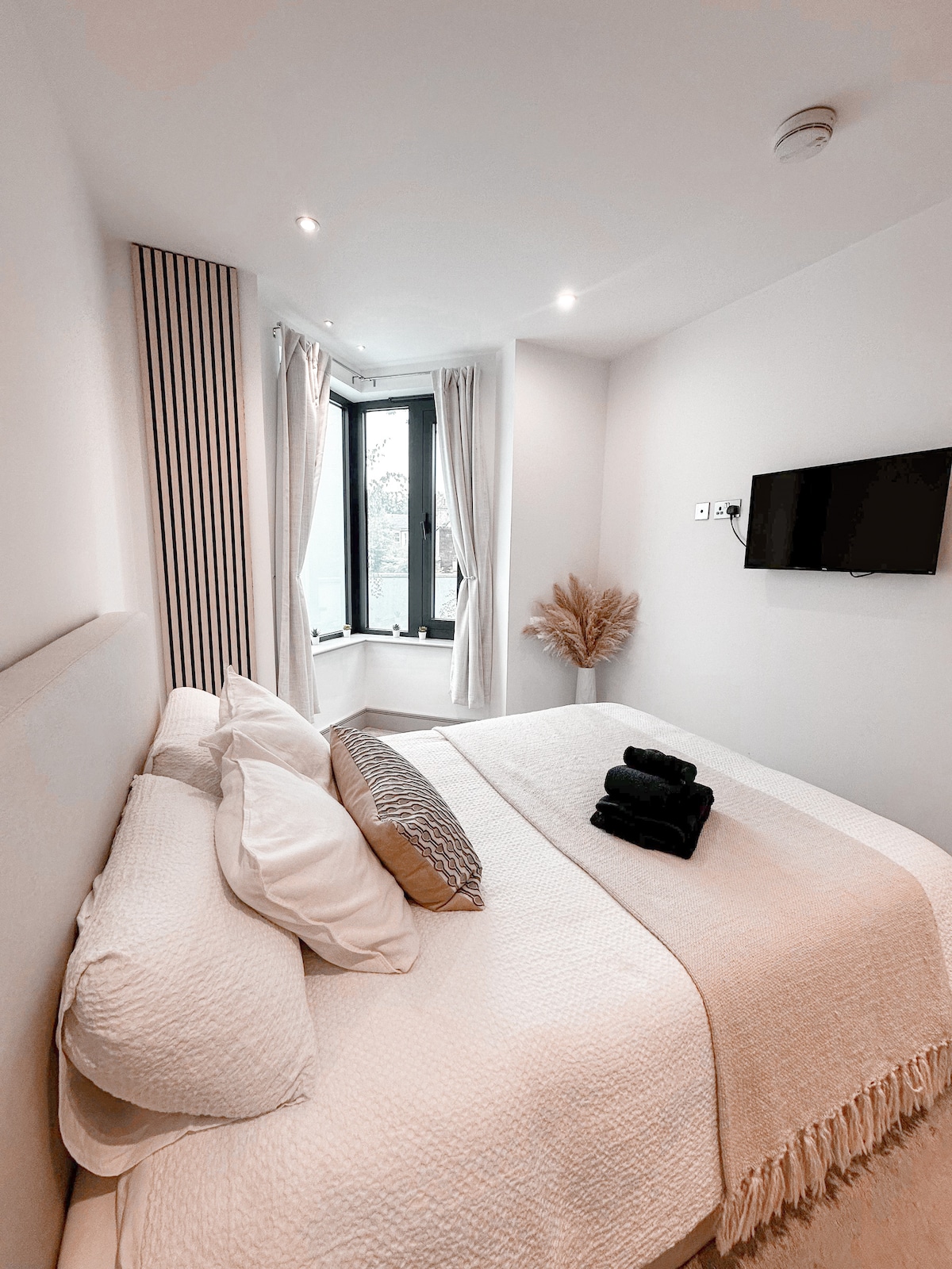 Welcome to our modern 1-bed apartment in London, Greenford. Just a 10-min walk to the Tube and 20-min drive to Wembley, it features an open-plan layout, sleek kitchen, and spacious bedroom. Relax on the private balcony with stunning canal views and enjoy sunsets in style. Guests have access to a rooftop terrace, gym, co-working spaces, games room, landscaped outdoor areas and even a pet spa – the perfect stay for both work and leisure.