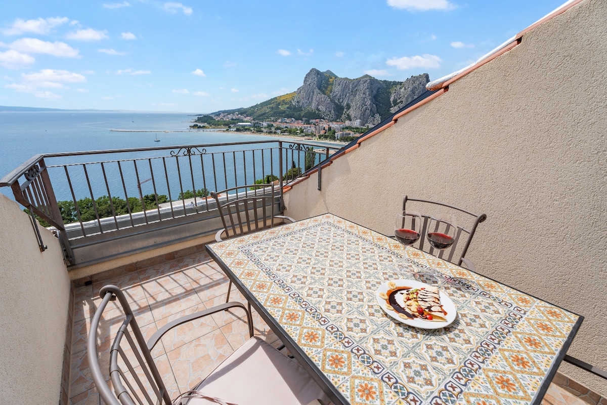 Wake up 10 metres from the sea. Step onto your balcony and take in the Adriatic view. Walk down to your private sunbeds on the beach. This beachfront apartment in offers a true seaside escape — spacious living room, fully equipped kitchen, and a newly built terrace perfect for outdoor dining in the sea breeze. Split Old Town & Omiš center are 15 minutes away. Free private parking included. In Croatia, private beaches do not exist by law — our beach feels private due to inaccessibility.