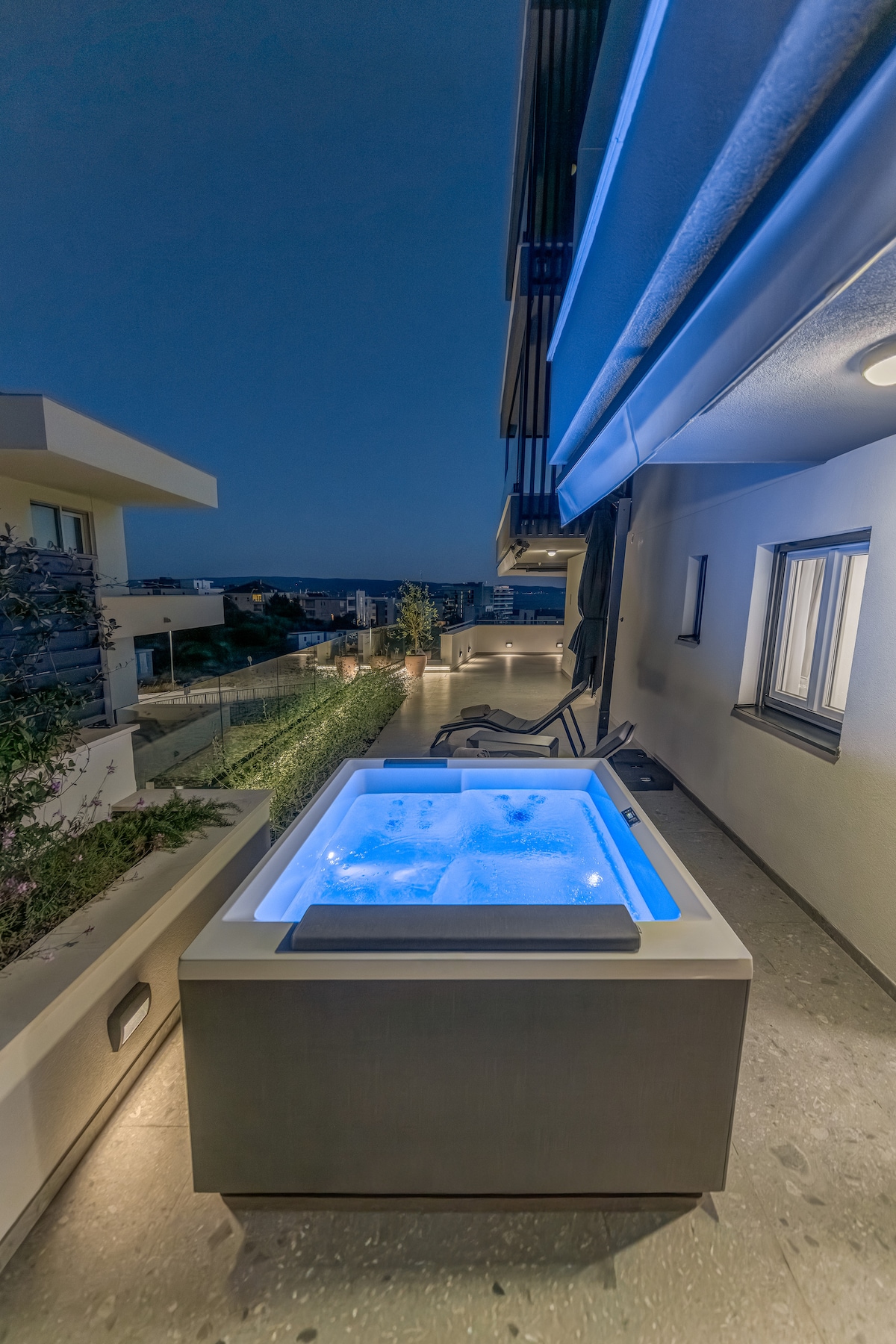 Ovaj luksuzni apartman nalazi se gotovo 500 m hoda od novouređene prelijepe plaže Žnjan sa rekreativnim sadržajima, sami centar grada udaljen je 3 km. Apartman uključuje 2 spavaće klimatizirane sobe, moderan i klimatiziran dnevni boravak sa Smart tv-om (uključujući Netflix), potpuno opremljenu kuhinju sa aparatima i perilicom posuđa, kupaonicu s perilicom rublja. Prekrasan pogled s terase koja posjeduje jacuzzi za opuštanje i uživanje. Besplatan parking u garaži.