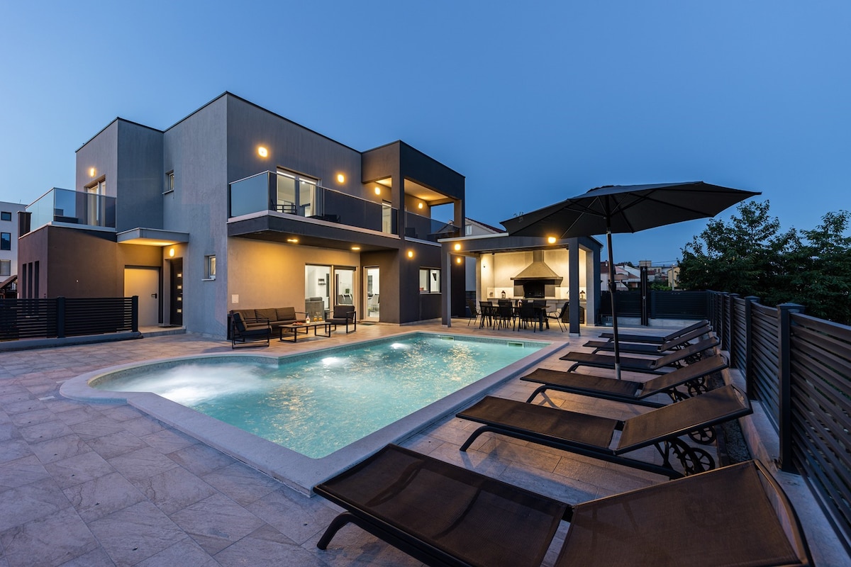 Villa Fox Exclusive was newly build and represents modern & luxury style on the Dalmatian coast. Villa is situated in quiet and peaceful area with amazing views of the Mediterranean sea and islands. Surrounded by autochthon plants, olive trees and palms, villa inviting you to spend nice and relaxing holidays with your family and friends. Heated swimming pool and nearby beach makes this villa as good spot during your stay in Croatia.