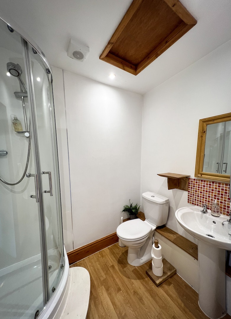 A luxury self-catering studio apartment with exposed slate walls, on our top (second) floor, Penthouse is suitable for a couple, two adults with a child, or a group of three. It has a solid oak, king-sized bed and a solid oak, single sofa bed, mini-kitchen and living area. The kitchenette has a small hob, fridge, and microwave. The bathroom has a roll-top bath and separate shower. Penthouse also enjoys access to a private roof terrace with stunning panoramic views. Too beautiful to miss!