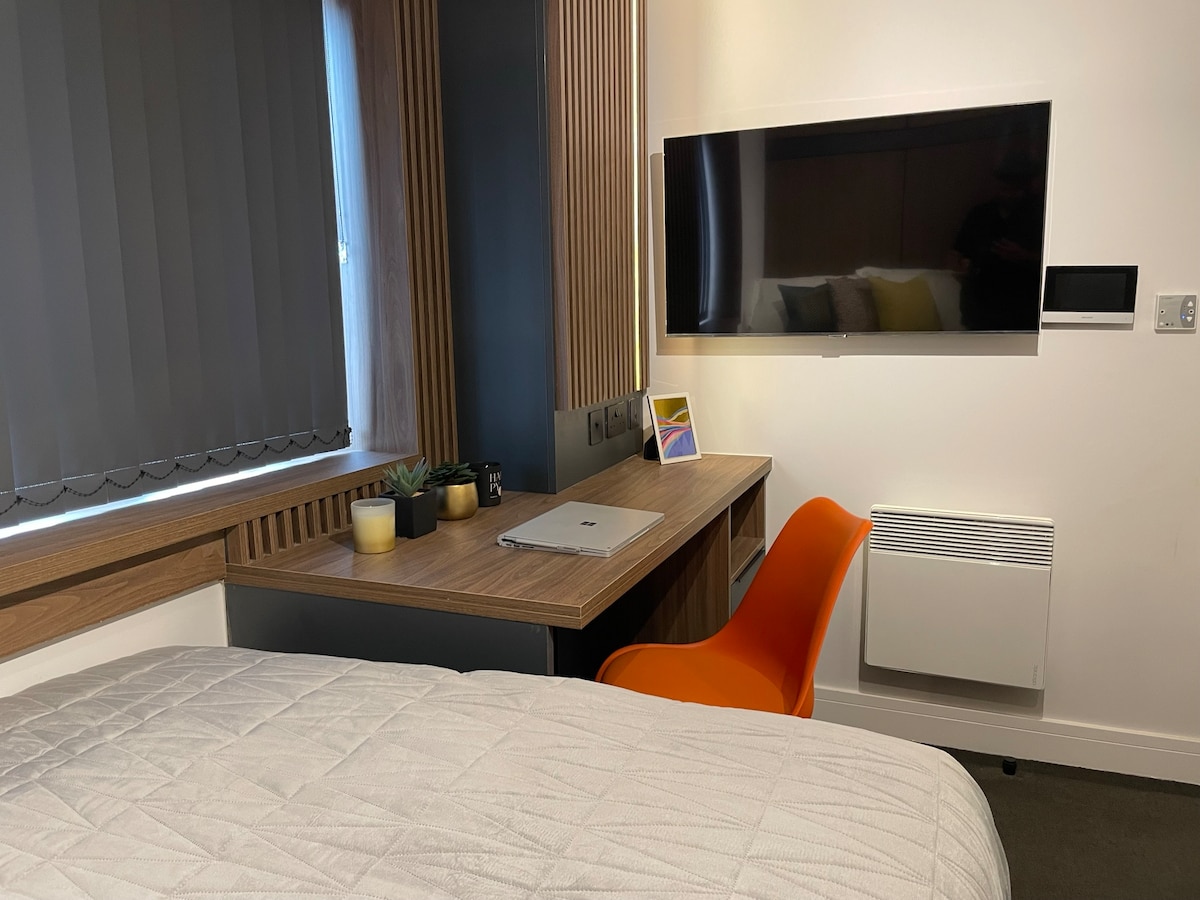 Fully furnished apartments Ensuite shower room Fully equipped kitchen TVs with Freeview satellite channels Unlimited, free internet access via wired and wireless links Heating system with personal controls Purpose built laundry room with washing, drying and ironing facilities at no additional cost