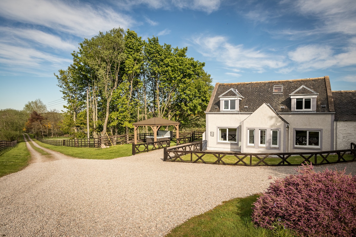 Luxury cottage with hot tub located on a farm only 5 minutes from Inverness and 10 minutes from Loch Ness with spectacular views of the surrounding countryside, Inverness and the Moray Firth. The farm has a herd of 12 Alpacas with 6 babies due June 2026. The cottage has 2 bedrooms (one superking, one king). The cottage is a perfect base for exploring Inverness, the Highlands and the NC500.