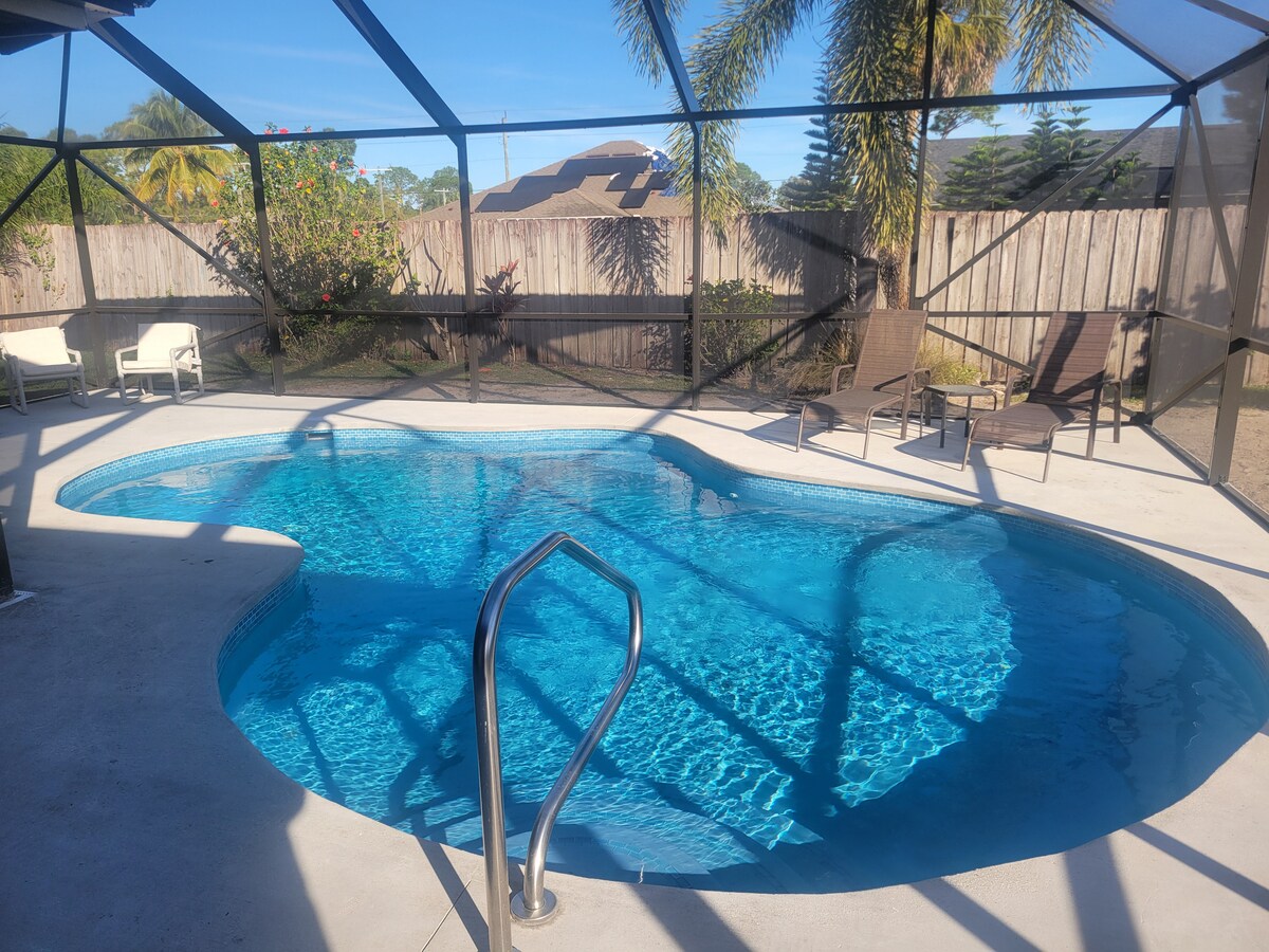 Inspired by Florida's unique tropical landscape, this family friendly 3 bedroom 2 bath house has been tastefully remodeled and decorated for you to enjoy. Surrounded by beautiful tropical plants, our screened lanai is the perfect place to enjoy your morning cup of Nespresso coffee. Our home is nestled in a wonderful community minutes away from downtown Ft. Pierce via a drive along the beautiful Intercoastal waterway that overlooks Hutchinson Island.