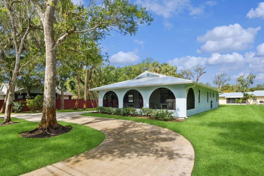 Welcome to Raintree House, a vibrant tropical oasis on Florida's Treasure coast. This 3 bedroom, 2 bathroom treehouse style cabin features an ultra private backyard with huge pool- surrounded by mature palms. Along with 70's inspired artful decor, cedar walls, and an open floor plan, this residence is made for a relaxing getaway among friends. Whether you're beach bound, exploring trendy downtown Ft Pierce, or spending your vacation poolside, Raintree House is the perfect Floridian solace.