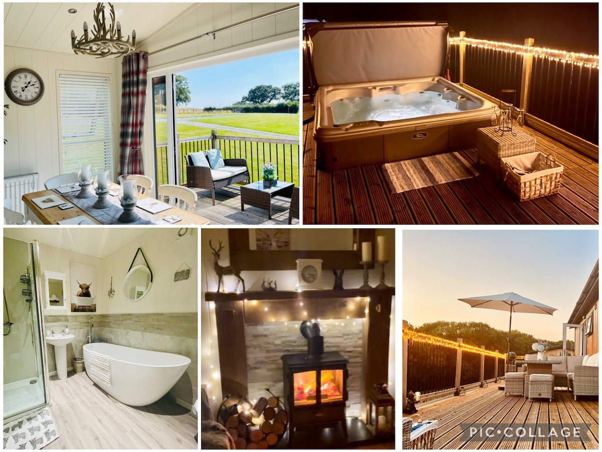 位于威尔士边境的时尚3床小木屋,配备热水浴缸。