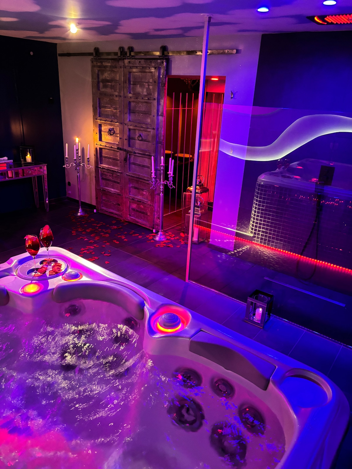 Étonnez vous lors de cette escale, notamment avec son lit à eau chauffant , sa cage si pas sage , son étoile 🌟 , et son fauteuil pour bien se détendre , Vous retrouverez aussi notre restaurant (en option) et sa carte de produits faits maison et nos praticiennes Spa pour un massage Duo (option)