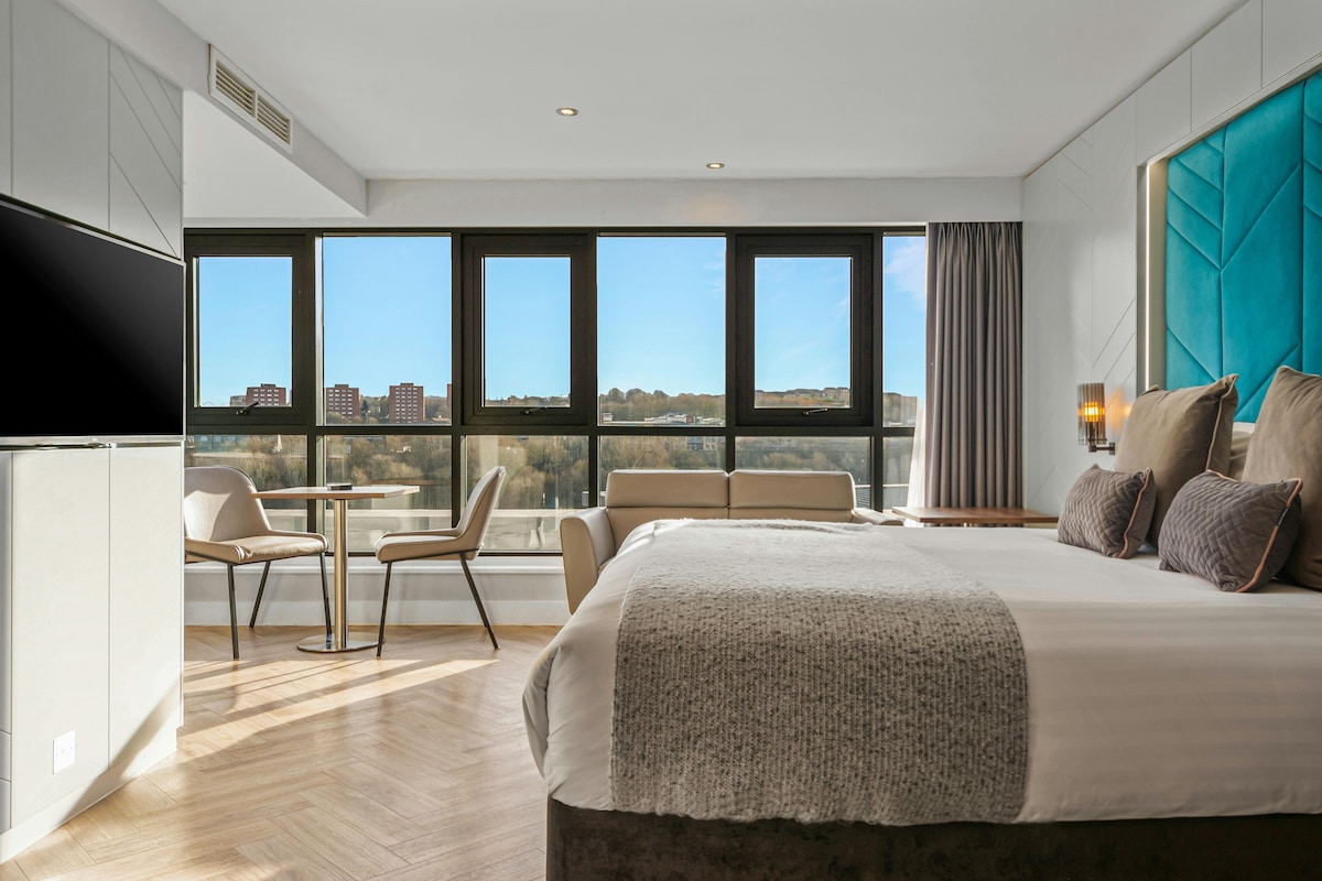 This lovely room with a double bed offers a warm and inviting space with stunning views of the River Tyne. Designed for comfort and relaxation, the room also features a work desk and modern conveniences such as free Wi-Fi and a flat-screen TV with satellite channels. Large windows allow natural light to fill the room, creating a bright and airy atmosphere.