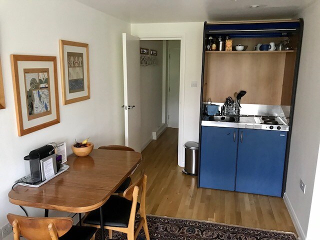 Cozy little dual-aspect self-catering studio flat with gated private west-facing courtyard in a quiet and safe residential area but within walking distance to shops, cafés, restaurants and pubs. Located within Zone 2, it is well-connected to transport systems (bus, tube and overground trains) that will take you to Central London and surroundings in minutes. Free parking on the premises (subject to availability) or on-street from 4:30pm - 9:30am weekdays and all-day on weekends.