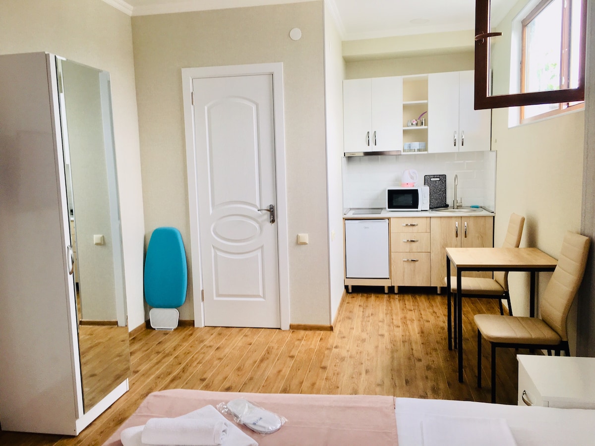Welcome to a calm and eco-friendly home. It's a newly built stylish studio. The apartment building is located in front of the most well-known neighborhood in Tbilisi "Jikia House". Our guests are welcome to use Jikia House services as we hold other apartments there too. Near the house, there are a few universities, co-working spaces, restaurants, markets, well connected transportation lines to the center and a metro station of State University.
