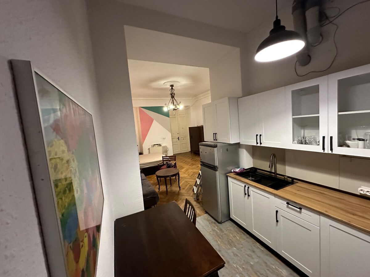 Historical stylish apartment with a projector in the bedroom, a cozy balcony and neon lights:) ㅤ It is located in a 200-year-old cultural heritage building, which is located in the historical part of the city, near the Tbilisi State Conservatory (in the evenings you can hear live music while sitting on the balcony). ㅤ The area is full of theatres, museums, pubs, restaurants and shops. A few minutes walk from Rustaveli Av. and Freedom Square, a bus stop to/from the airport, two metro stations.