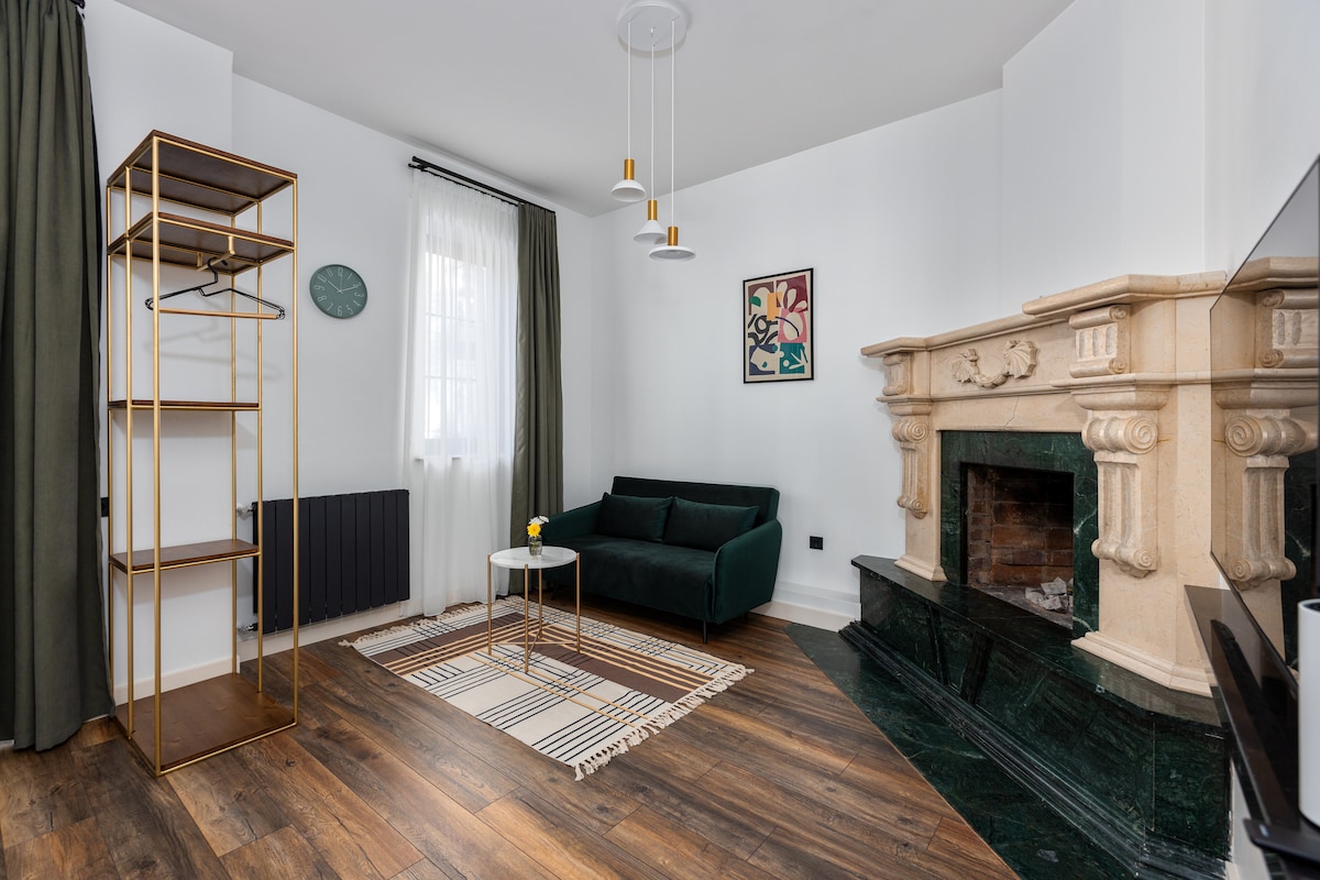 This gorgeous, pattern clashing apartment is an explosion of fun color. This is an outstanding modern design apartment, in the historical 120 years old building that is cultural heritage of Georgia. It is located in the heart of old Tbilisi in Sololaki district. Recently renovated 3 bedrooms and 3-bathroom apartment features unique touches like 4m height celling, book collection and fireplace. 2 of the 3 BDRs are master BDRs. What’s more, there is a private balcony with a beautiful garden view.