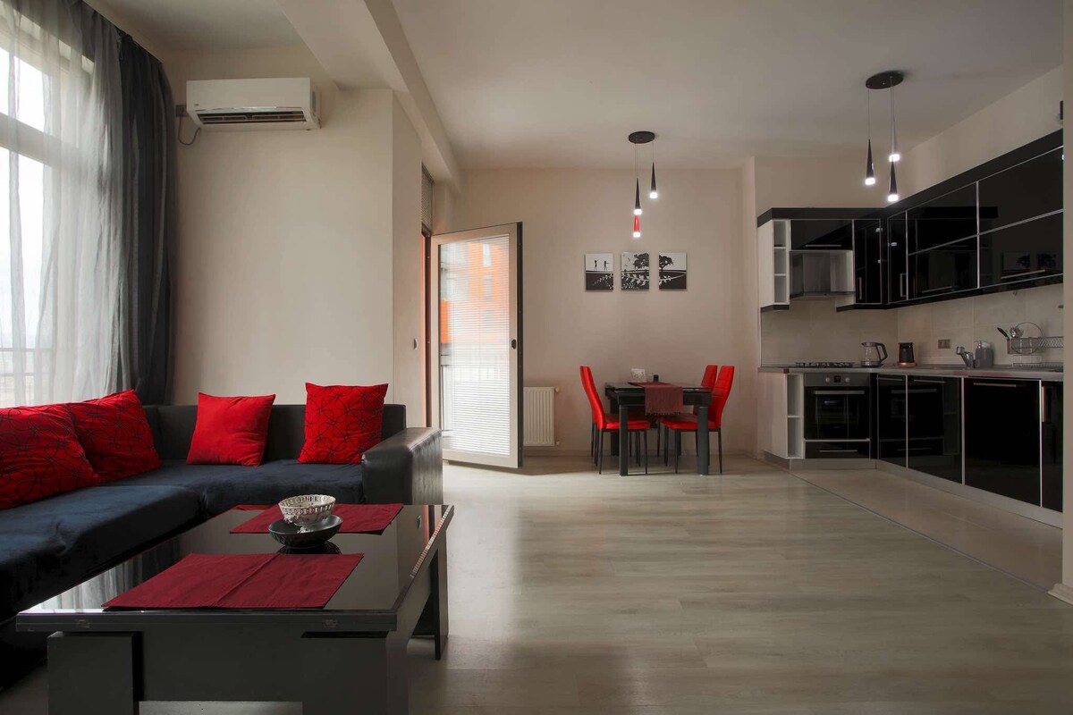 Comfortable, cozy and bright apartment . The apartment is equipped with all necessary modern amenities. Just have a rest, drink delicious coffee, work, walk around and spend wonderful time. Nearby there is almost everything for your needs. Welcome. CLOSE TO APARTMENT Shopping mall, Tbilisi Sports Palace, supermarkets, Magti, pharmacies, parks, cafes, restaurants. Metro "Technical University" Bus stops Taxi ✈ AVAILABLE TRANSFER SERVICE - Airport < - > Apartment, Trips