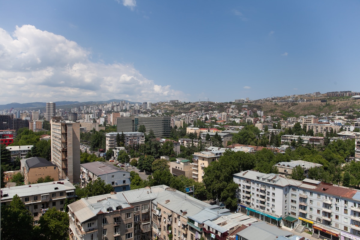 This unique place has a style all of it's own, in a central location next to Vake Park, major restaurants, shopping, banks, grocers, cafes, etc. The way the light dances through the windows will simply dazzle and inspire you. The apartment itself brand new (the building is older with thick walls and and elevator), so it's also a great way to immerse yourself in the neighborhood in a quiet, nice place with stunning views and proximity to everything.