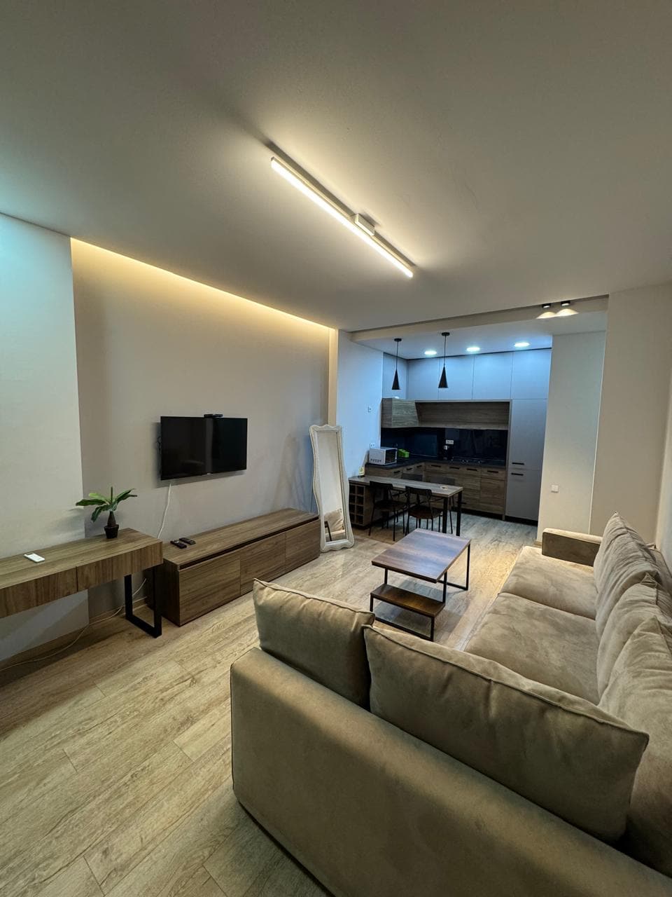 The apartment is a prestigious ecological clean area on the territory of the hippodrome. Studio with all conveniences, one bedroom large bathroom, a kitchen is equipped with home appliances and it has a large balcony. The total area is 55 sq.m. Апартамент находится престижном экологический чистом районе на территории бившего ипподрома. Номер студио со всеми удобствами, ванной комнатой, кухней, с прихожим и с большим балконом. общая площадь 55 кв.м.