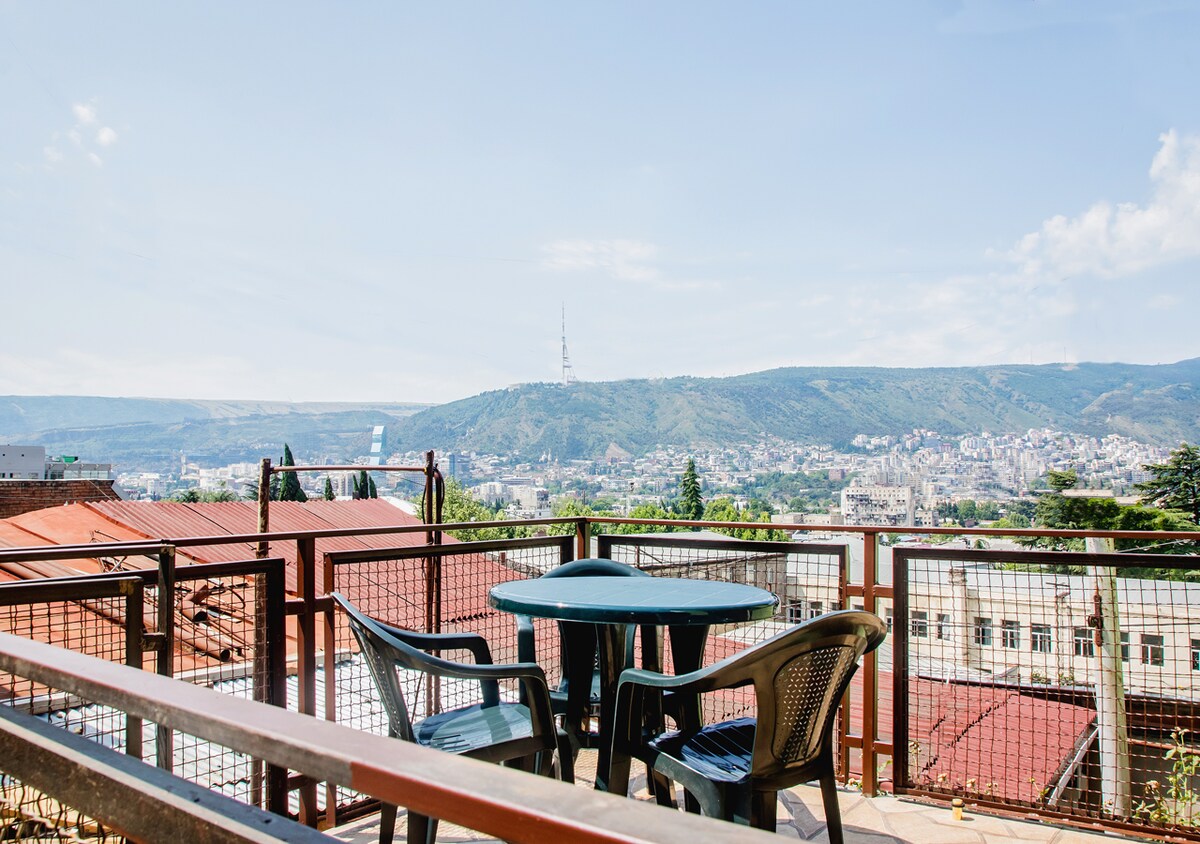 Modern superstructure on the old 5-storey building (152 m2) 5 rooms. Accommodates 6 guests. On the first floor: bedroom with double bed, living room, bathroom, kitchen, veranda. On the second floor: two bedrooms (one with a single bed and one with a double bed), bathroom (no shower), veranda with panoramic views of the city and Mtatsminda (Funicular). The apartment is located in the very center of the city (5 minutes walk to Rustaveli Avenue).