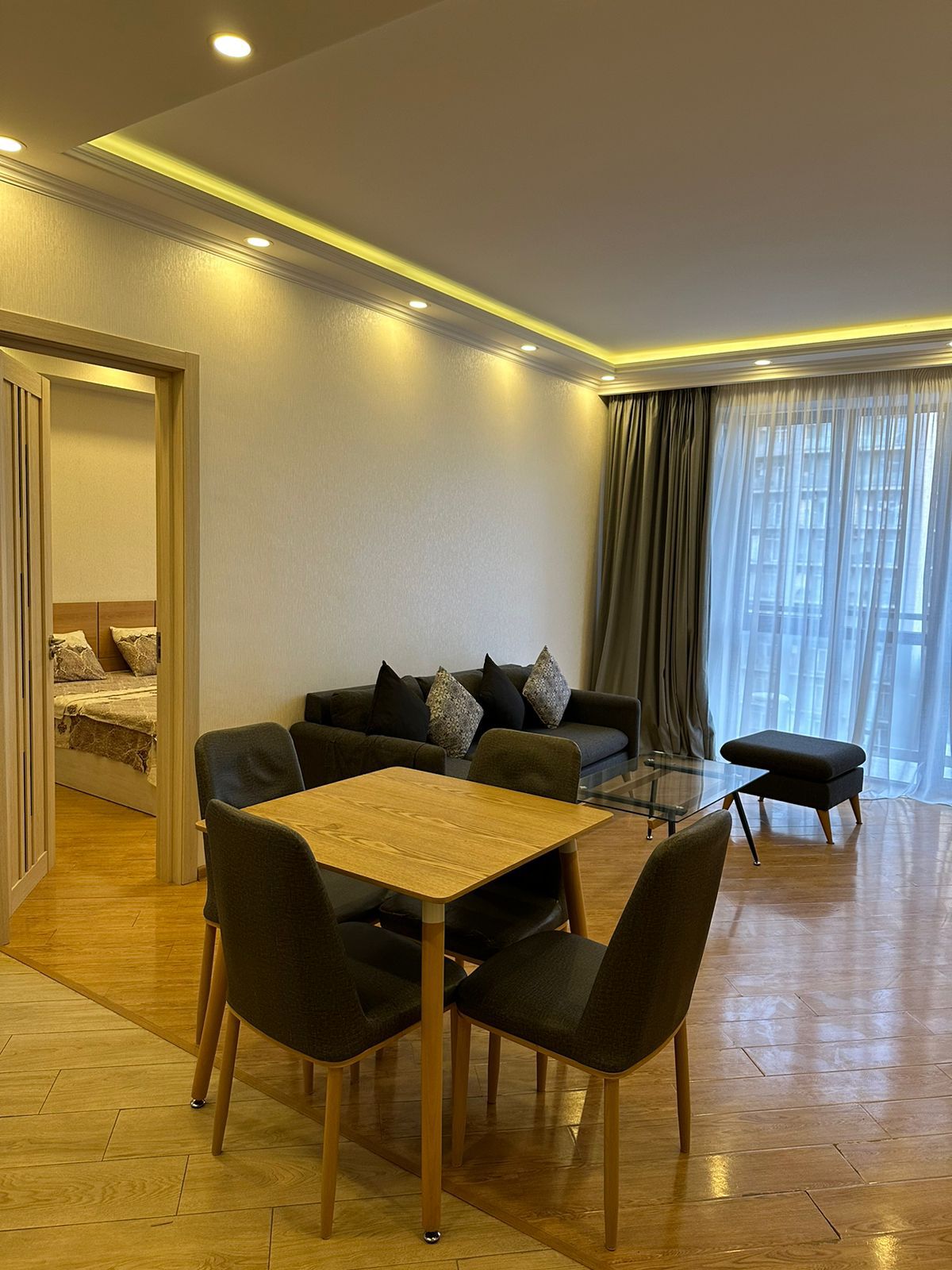 The apartment is a prestigious ecological clean area on the territory of the hippodrome. Studio with all conveniences, one bedroom large bathroom, a kitchen is equipped with home appliances and it has a large balcony. The total area is 55 sq.m. Апартамент находится престижном экологический чистом районе на территории бившего ипподрома. Номер студио со всеми удобствами, ванной комнатой, кухней, с прихожим и с большим балконом. общая площадь 55 кв.м.
