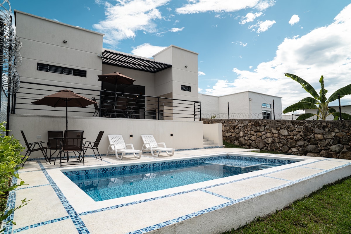 ¡Descubre Casa Finca Mercedes en el condominio Valle de la Rivera, a solo 1 km de Rivera, Huila! Con capacidad para 15 personas, ofrece tres habitaciones, aire acondicionado, ventiladores, tres baños, kiosco paisa y terraza chill out. Pero lo más destacado es su impresionante piscina . ¡Tu oasis en Huila te espera! Wifi disponible