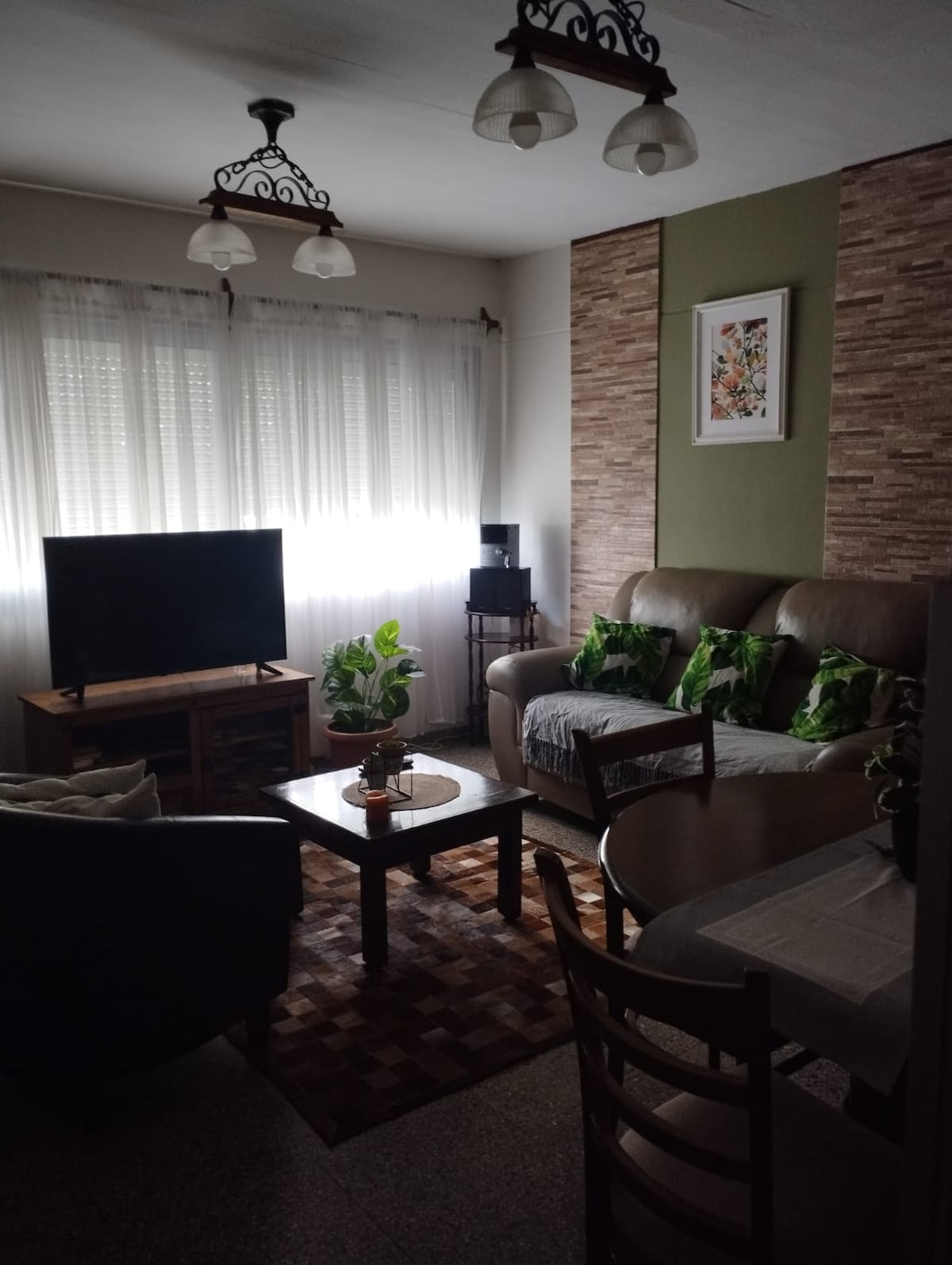 Apartamento a metros del centro comercial. Todos los ambientes iluminados con ventanas al exterior. Garaje individual. Cómodo estar con escritorio, tv cable, sofá cama para dos personas, comedor y cocina completa (heladera, horno, anafe, microondas, vajilla para 4 personas). Amplio dormitorio con estufa a lena con dos camas individuales o una cama doble (a solicitud). Baño completo. Wifi