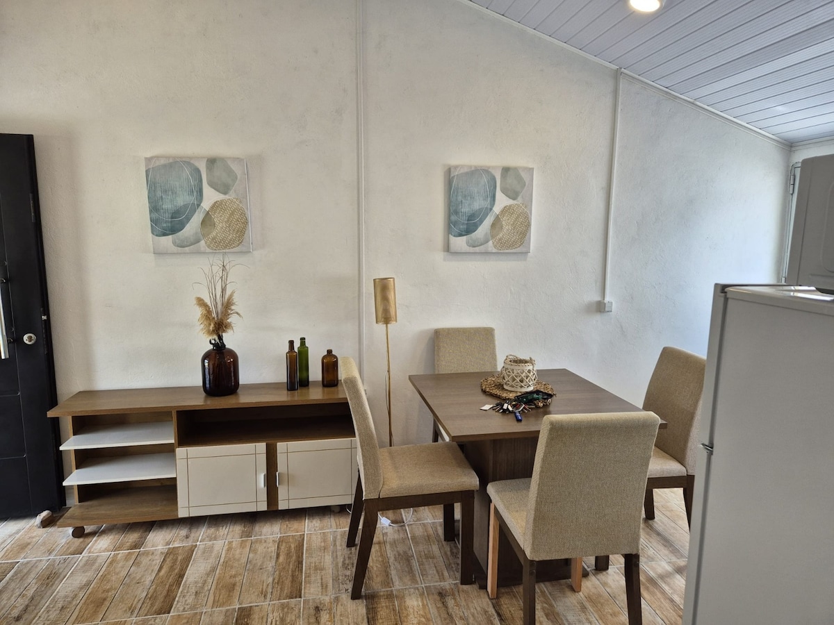 Disfrutá de una estadía en este moderno apartamento para 2 huéspedes con opción a 3. Cuentas con todas las comodidades: cocina completa, aire acondicionado, Wi-Fi,TV y baño completo.El espacio es luminoso y funcional, 1 dormitorio living comedor patio con parrillero privado, perfecta para disfrutar de un asado al aire libre. Ubicado en una zona tranquila y segura, este alojamiento es ideal tanto para descansar unos días como para estadías más largas, para menores de 4 años tenemos practicuna.