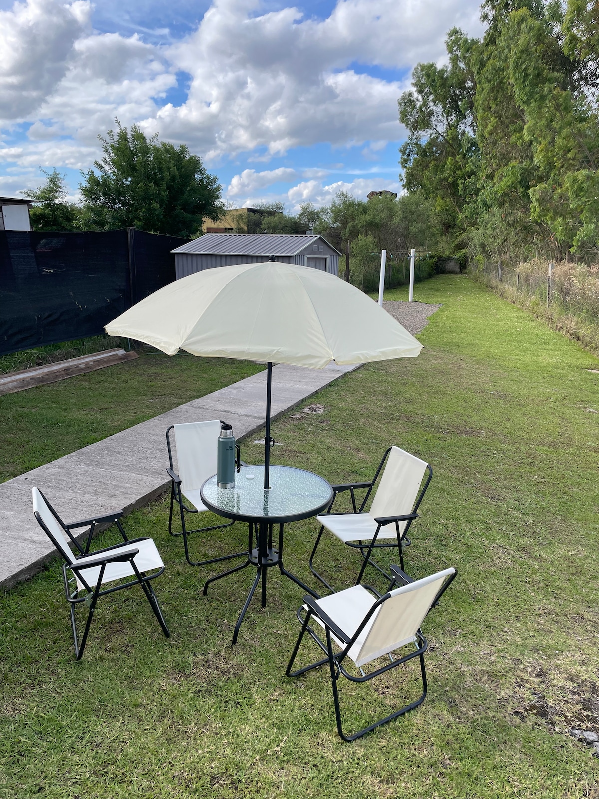 Lugar muy privado, cercado todo de muros. Relájate con la familia o amigos en este tranquilo lugar, cuenta de espacios verdes, un parrillero móvil y un hermoso fogón para usar. Se puede estacionar dos autos en el predio.. La casa está completamente equipada tanto cocina como dormitorios con ropa de cama y toallas si lo requieren. A minutos del centro de la ciudad.