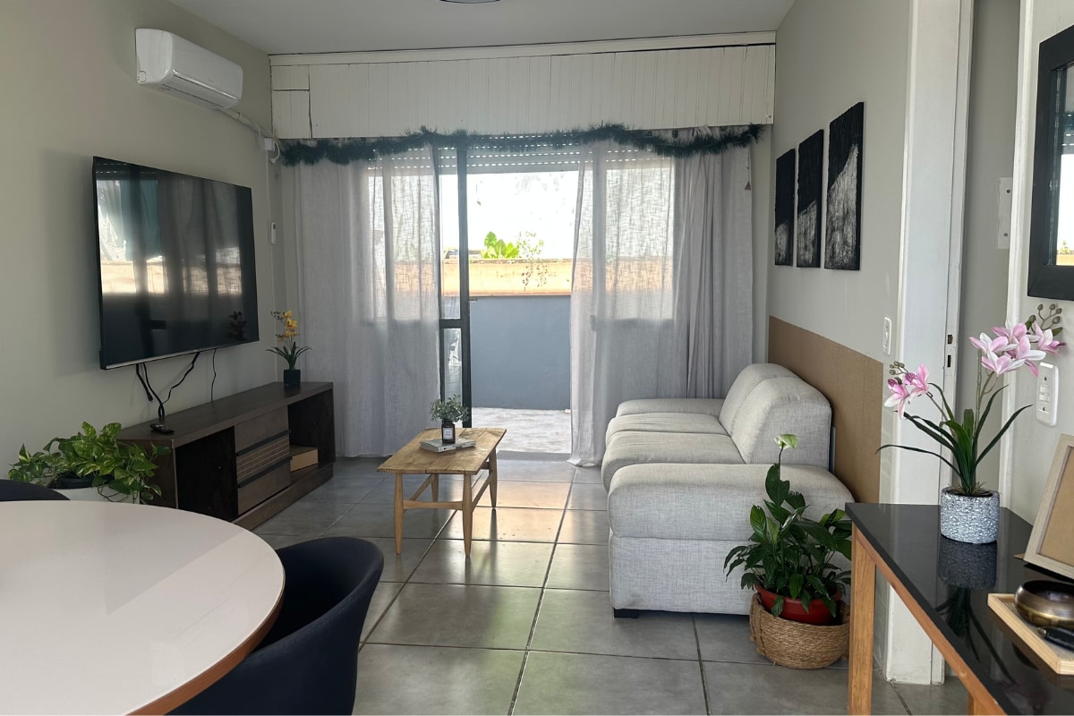 Lugar tranquilo e bem-localizado. No quarto tem cama de casal, televisão e 2 ar condiciona. A sala tem os equipamentos necessários para refeições, tais como forno elétrico, micro-ondas, torradeira, jarra elétrica, geladeira, pratos e talheres. Não tem fogão a gás. Banheiro com chuveiro elétrico. Tem, também, uma cama de solteiro. Pátio e saguão de uso comum. Dista uma quadra da Praça Gen. Osório, duas da Prefeitura, UERGS, UNIPAMPA, bancos, farmácias e supermercado. A 900 metros dos freeshops.