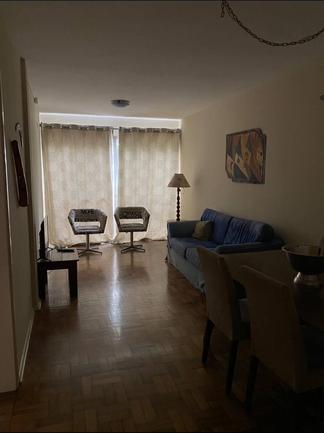 Apartamento com dois quartos, dois banheiros, cozinha, cafeteira, cafeteira, geladeira, fogão, sala de estar com televisão com vários canais, internet e também máquina de lavar roupas na parte externa! Localizado há 2 minutos de carro do Shopping Sineriz e há 5 minutos da linha divisória Brasil Uruguai. Estacionamento incluso! Roupas de cama e banho também estão disponíveis durante a hospedagem. Ar condicionado em um dos quartos, ventilador nos dois quartos!