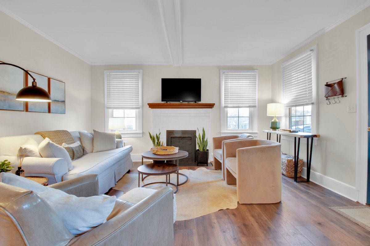 Come and enjoy your stay at Elmwood Retreat, a beautifully renovated 4 BR home in historic Elmwood Park. Built in 1905 and updated with modern comfort, it's perfect for remote work, family trips or extended stays. Enjoy high-seed Wi-Fi, a dedicated workspace, and a peaceful neighborhood. Steps from Main Street and the Vista and close to Riverwalks, museums, parks and Colonial Life Arena, this home offers charm, safety and convenience, for every guest to feel home.